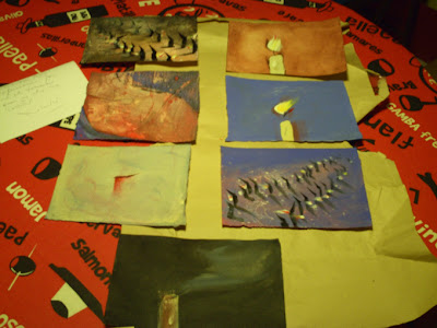 The seven drawings by Rosselló arrived at my home very well wrapped and protected. As the contents of the envelope were new and felt like a discovery, I documented the unwrapping process as if opening an Egyptian sarcophagus. First, the craft paper envelope, and then a very appealing box, repurposed and bearing a fitting inscription, an ancient quote about art. The final contents are Rosselló’s seven drawings, created with paint, sometimes treated like watercolor, sometimes with a more opaque quality. Rosselló is very fond of colors. However, my memory from seven years ago was that the artist from Tarragona had a more classicist-rooted style. But I do not mean old-fashioned; rather, he created figures with a Latin air, with ethnographic roots in the Mediterranean villages. And his use of colors was also very joyful. In contrast, in the drawings I have received, we find a darker Rosselló, one who evades description, even narration, and seeks more to convey an impression. Viewed as a whole, I find it to be a beautiful series. The blues are still maritime, and color remains important, but perhaps the artist has matured and is exploring other expressive phases. A retrospective exhibition of the artist’s last seven years would be needed to better assess this. His drawings are seven in number because he embraces the meaning of “week,” of seven days, to present his vision of Espriu’s suite. Espriu’s fears and darkness perhaps also connect with the painter’s present, who, like many, suffers from the economic and social crisis of our times. Rosselló adds touches of hope – his blues and colors are optimistic – because he is one who does not give up. Like Espriu, who, although interested in pessimistic and painful themes, kept going and never stopped writing. Never give up!